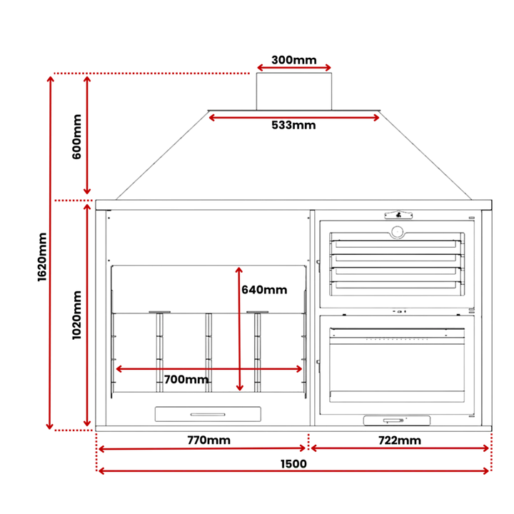 Tai universalus sprendimas lauko virtuvei, leidžiantis mėgautis tiek kepimu ant grotelių, tiek autentišku maisto gaminimu malkinėje orkaitėje.