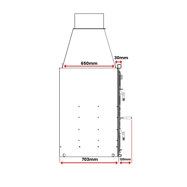 Konstrukcija pagaminta iš tvirto plieno, kurio storis siekia iki 4 mm, užtikrinant patikimumą ir atsparumą intensyviam naudojimui. Įrenginys turi išimamus pelenų stalčius, kurie leidžia lengvai palaikyti švarą, bei integruotą kaminą su dūmtraukiu efektyviam dūmų šalinimui.