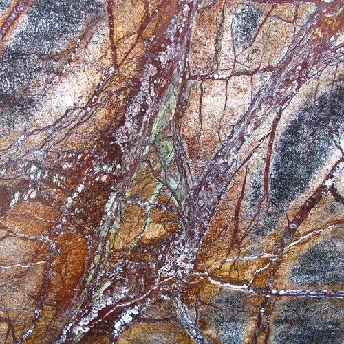 Iš marmuro ar granito dažniausiai gaminamos židinio apatinės ir viršutinės lentynos, kartais židinio kolonos ar cokolinė dalis . Židinio „saugos zona“ neretai gaminama iš marmuro (granito), naudojant tą patį marmurą (granitą), kaip ir paties židinio apdailai. Natūralus akmuo puikiai dera su kitomis natūraliomis interjero apdailos medžiagomis – medžiu, metalu. Pasirinkus šią apdailos medžiagą, faktiškai nėra apribojimų nei formai, nei gaminio storiui, nei gaminio gabaritiniams išmatavimams. Spalvinė gama, taip pat, labai plati. Galima pasirinkti ne tik spalvą, bet ir rašto intensyvumą, struktūrą bei paviršiaus „blizgumą“ . O interjerą papildžius to paties akmens palangėmis, stalviršiais ar kitais natūralaus akmens dirbiniais, suteiktume daugiau vientisumo.